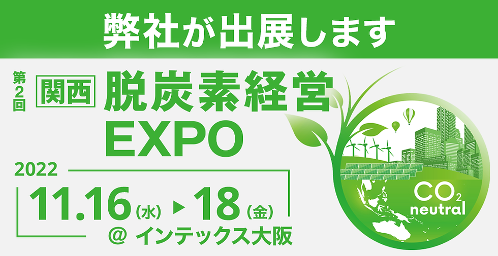 11月16日(水)~11月18日(金)インテックス大阪で開催される「【関西】脱炭素経営EXPO」に出展いたします。(同時開催:スマートエネルギーWeek)